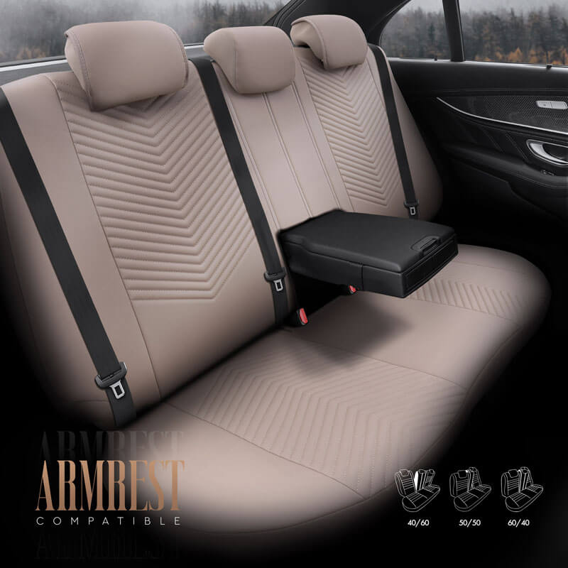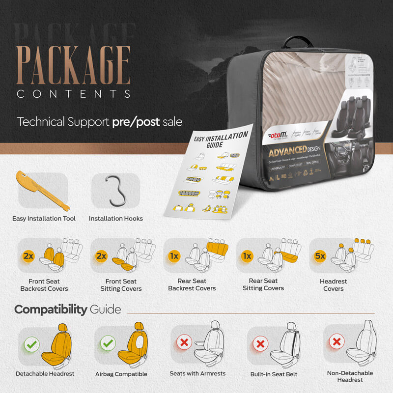 Καλύμματα Αυτοκινήτου Otom "Advanced Leather" Universal Δερματίνη / Λινό Ύφασμα Σετ Εμπρός / Πίσω Μπεζ ΑDV-105 11 Τεμαχίων