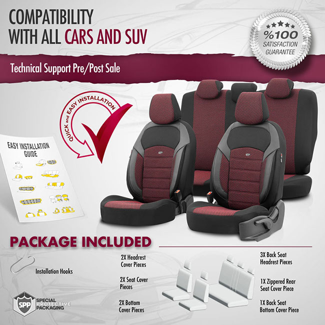 Καλύμματα Αυτοκινήτου Otom Nova Universal Ύφασμα Jacquard / Δερματίνη Σετ Εμπρός / Πίσω Κόκκινο - Μαύρο NOV-3303 11 Τεμάχια