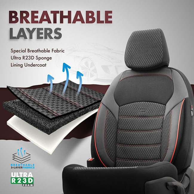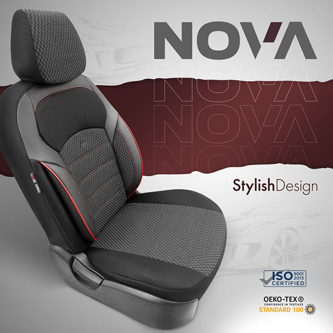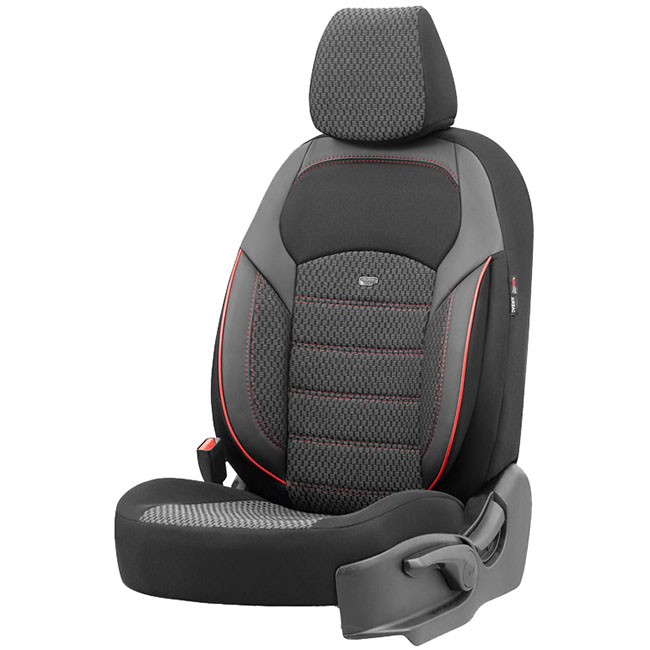 Καλύμματα Αυτοκινήτου Otom Nova Universal Ύφασμα Jacquard / Δερματίνη Σετ Εμπρός / Πίσω Μαύρο - Κόκκινο NOV-3302 11 Τεμάχια