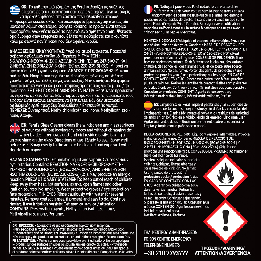 ✅ Χρησιμοποιήστε το με πανί μικροϊνών για τζάμια της Feral για τέλειο φινίρισμα.