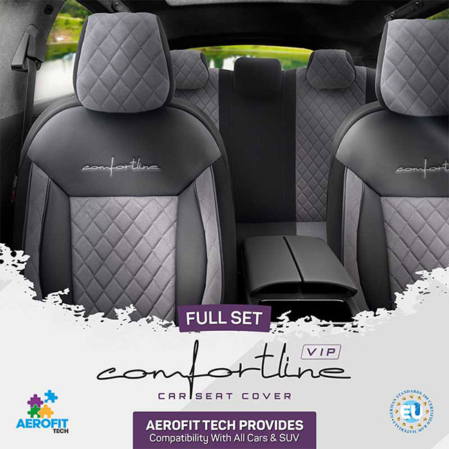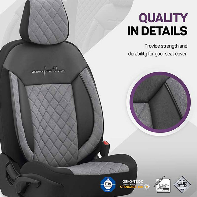 Καλύμματα Αυτοκινήτου Otom Comfortline VIP Design Universal Sued / Rachel / Δερματίνη Καπιτονέ Σετ Εμπρός / Πίσω Μαύρο - Γκρι CMV-233 11 Τεμάχια