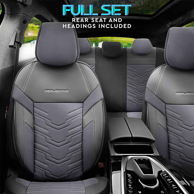 Καλύμματα Αυτοκινήτου Otom Reflective Design Universal Jacquard / Rachel / Δερματίνη Σετ Εμπρός / Πίσω Μαύρο - Σκούρο Γκρι RFL-2603 11 Τεμάχια