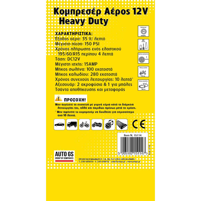 - 1 x Κομπρεσέρ αέρος με μανόμετρο