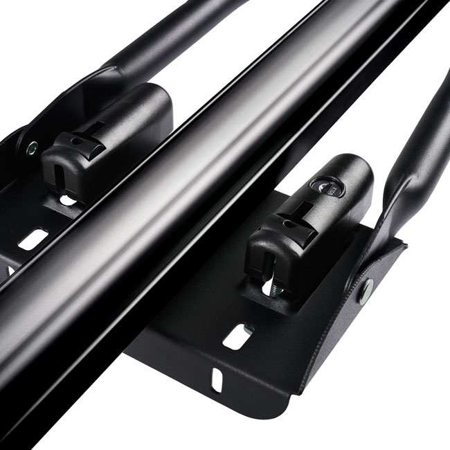 Η τοποθέτηση γίνεται εύκολα, τόσο γύρω από τις μπάρες οροφής όσο και απευθείας στην ράγα "T" των ράβδων αλουμινίου. Ανανεωμένο σύστημα στερέωσης , οι σφιγκτήρες πλαισίου έχουν ένα νέο σχέδιο που αποτρέπει την ολίσθηση του ποδηλάτου ακόμη και αν δεν έχει επιτευχθεί πλήρως η βέλτιστη ροπή.