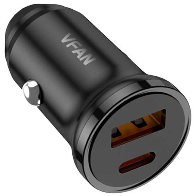 Φορτιστής Αναπτήρα Αυτοκινήτου C03 Με 1 Θύρα USΒ-A & 1 Θύρα USB-C 20W Μαύρος 1 Τεμάχιο